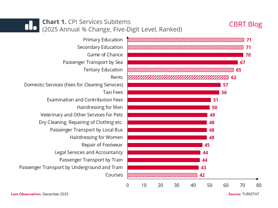 To conclude, the education, rents and locally provided services items with limited competitiveness stand out as the key sub-items in the high course of service inflation in 2025. We expect that the latest regulatory change in education will contribute to the disinflation process by relatively weakening the backward indexation mechanism. On the rents front, both the seasonally adjusted price data and leading indicators for rents point to a downward underlying inflation. However, price increases in locally provided services items with limited competitiveness such as urban transport, barbers/hairdressers, household cleaning and dry cleaning may involve rigidities that can be attributed to income expectations, market structure, and pricing behavior, in addition to cost and demand factors. These rigidities are among the factors that affect the course of inflation and challenge the disinflation process.