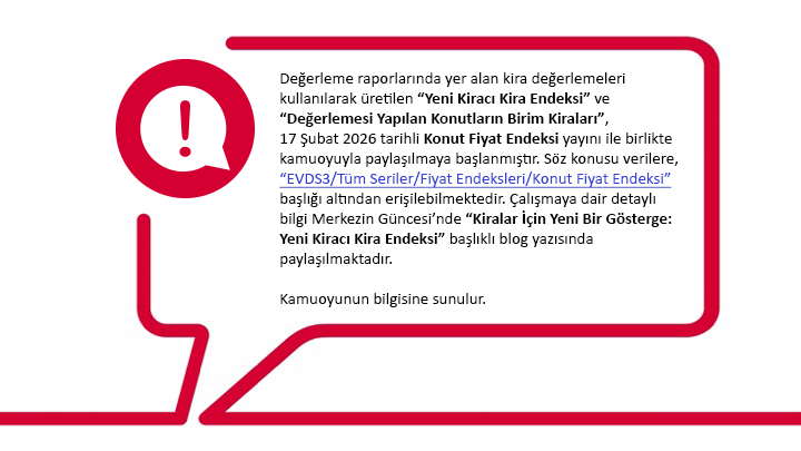 Yeni Kiracı Kira Endeksi’nin hesaplanması çalışmasına dair detaylı bilgiler Merkezin Güncesi’nde “Kiralar İçin Yeni Bir Gösterge: Yeni Kiracı Kira Endeksi” başlıklı blog yazısında paylaşılmaktadır.