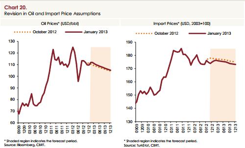 Regarding the fiscal outlook, medium-term inflation forecasts take the revised projections of the MTP as given. Accordingly, it is assumed that fiscal discipline will be preserved and the structural budget balance will not display a notable change in the forthcoming period. Thus, there has been no change in end-2013 inflation forecast stemming from fiscal policy.