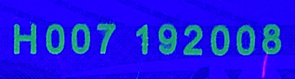e) The serial and sequence numbers printed in "red" will glow in "bright and shiny red" and those printed in "black" in a "yellowish green".
