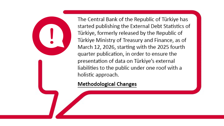 In addition, the CBRT’s blog post "A New Era in the Compilation and Publication of External Debt and Balance of Payments Statistics" also provides detailed information regarding the External Debt Statistics of Türkiye.
