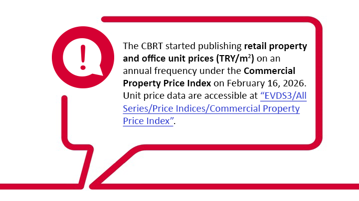 The Commercial Property Price Index statistics cover indicators constructed for monitoring price movements in the Turkish commercial property market.
