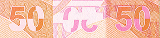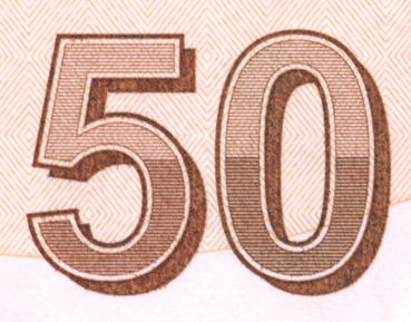 Banknota farklı açılardan bakıldığında altın sarısına dönüşür. Üzerinde "50" sayısı ve "TL" harfleri bulunur.