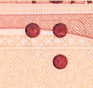 Banknotun ön yüzünde farklı yerlerde bulunur ve dokunulduğunda hissedilir.