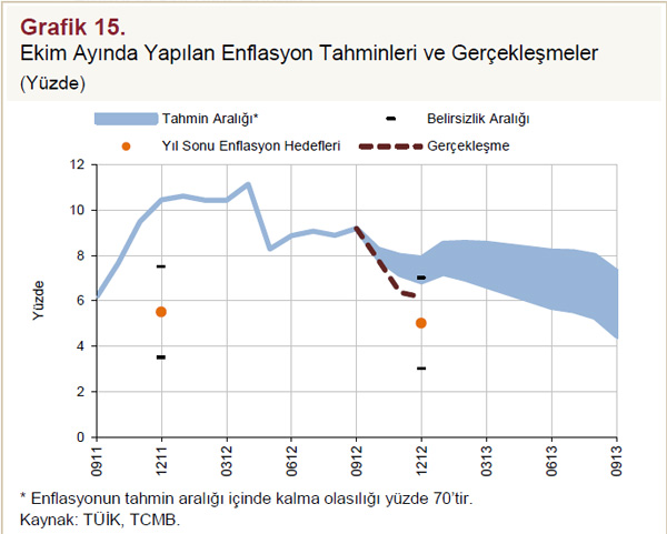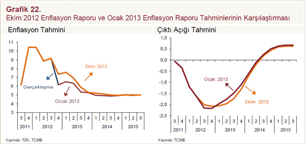 Özetle, enflasyon görünümünü etkileyen unsurlarda son üç ay içinde belirgin bir değişim olmaması nedeniyle 2013 yıl sonu enflasyon tahminimizi yüzde 5,3 olarak koruduk.