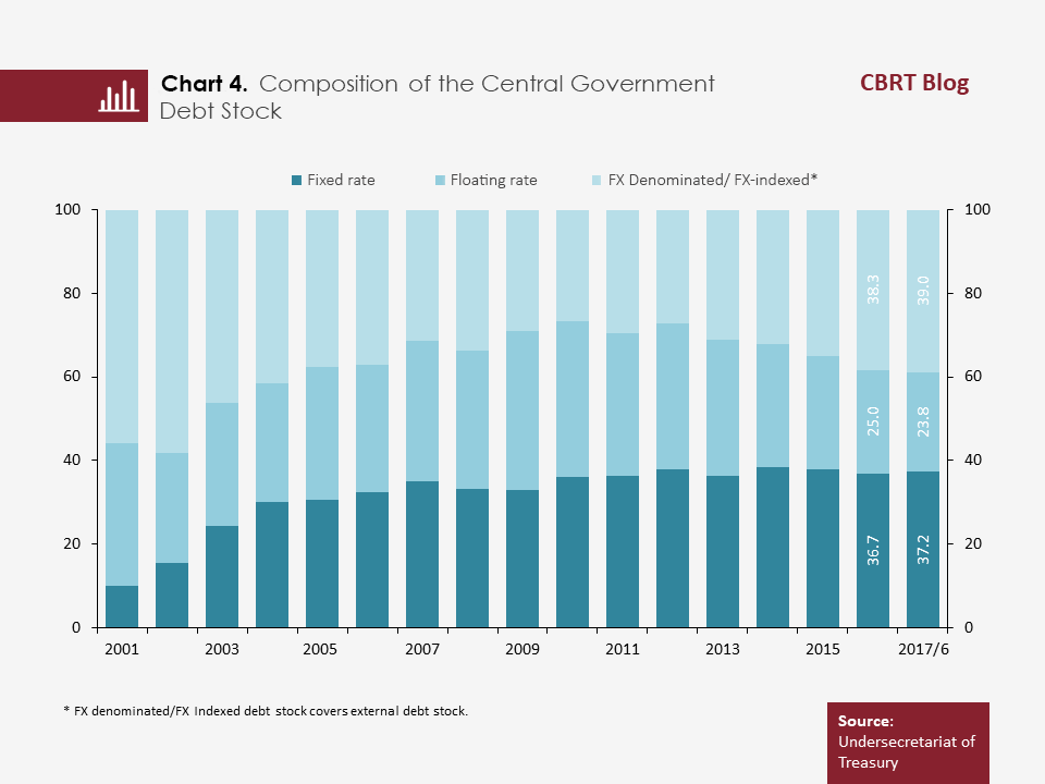 The first of the above-listed items points out that counter-cyclical policies would be more effective at times when production and employment are constrained by demand. In case of deficient demand, expansionary monetary policy is one of the policies that can be implemented, however, depending on the kind of shocks, in case of an economic slowdown coupled with rising inflation and inflation expectations, expansionary fiscal policies turn out to be a more feasible option. Nevertheless, for an expansionary fiscal policy to be effective there must be no complete financial crowding out and no complete direct crowding out. In cases where the ratio of debt stock to GDP is low and the maturity and composition of debt stock do not induce sensitivity to fluctuations in interest rates and exchange rates, the financial crowding out effect will be milder and thus, the expansionary fiscal policy will be more effective.